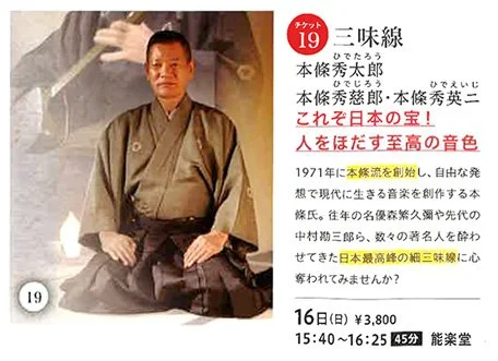 【演奏出演】アート・ミックス・ジャパン 日 時:2023年4月15日(土)16日(日)本條秀太郎出演日 時: 4月16日(日)15:40〜16:25会 場:新潟市民芸術文化会館 りゅーとぴあ 能楽堂入場料:3,800円 演奏出演本條流April 1, 2023最新情報 Facebook0 Twitter LinkedIn0 Reddit Tumblr 0 Likes