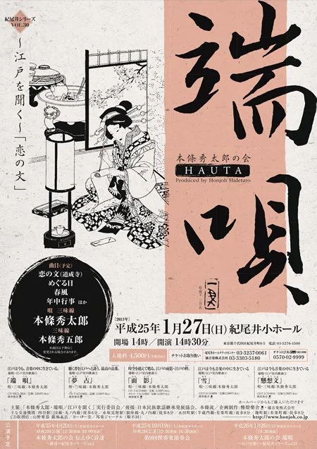【演奏会】端唄〜江戸を聞く〜「恋の文」紀尾井シリーズVOL.30 平成25年1月27日(日)14:30開演於紀尾井小ホール 端唄, 演奏会本條流March 30, 20232013, 本條流主催活動 Facebook0 Twitter LinkedIn0 Reddit Tumblr 0 Likes